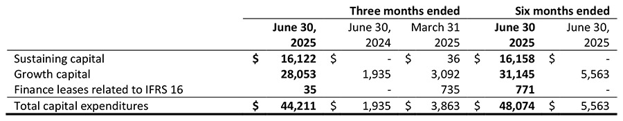 - Total capital expenditures1 for YTD 2025 totaled $48.1 million, including $16.2 million of sustaining capital expenditures1, $31.1 million of growth capital expenditures1 and $0.8 million related to financial leases. Sustaining capital expenditures were incurred during Q2 2025 following the completion of the Porcupine Acquisition. Of growth capital expenditures in YTD 2025, $26.9 million related to Porcupine, with $4.2 million related to Cordero, largely for land acquisition during Q1 2025.