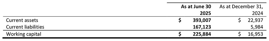 - Working capital1 at June 30, 2025, totaled $225.9 million as compared to working capital of $17.0 million at December 31, 2024. The working capital balance at June 30, 2025, reflected the significant increase in cash during Q2 2025 as well as higher levels of short-term trade and other receivables and inventories, offset by higher current liabilities, mainly accounts payable and accrued liabilities, reclamation liabilities, deferred revenue, current income tax and employee-related benefits.